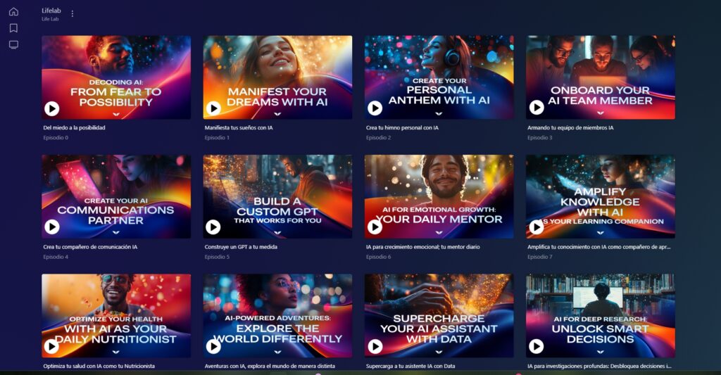 365 días de acceso ilimitado a 19 lecciones para transformar tu vida usando la inteligencia artificial. Aprenderás a crear: